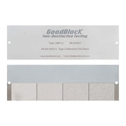 The GoodBlock NDT Type 2 Reference Test Blocks are used for routine assessment of the performance of both fluorescent and color contrast penetrant facilities and open containers. The reference block consists of a single panel, of which one half has been hard-plated and the other half prepared to achieve areas of specific roughness. The hard-plated side exhibits five star-shaped discontinuities.
